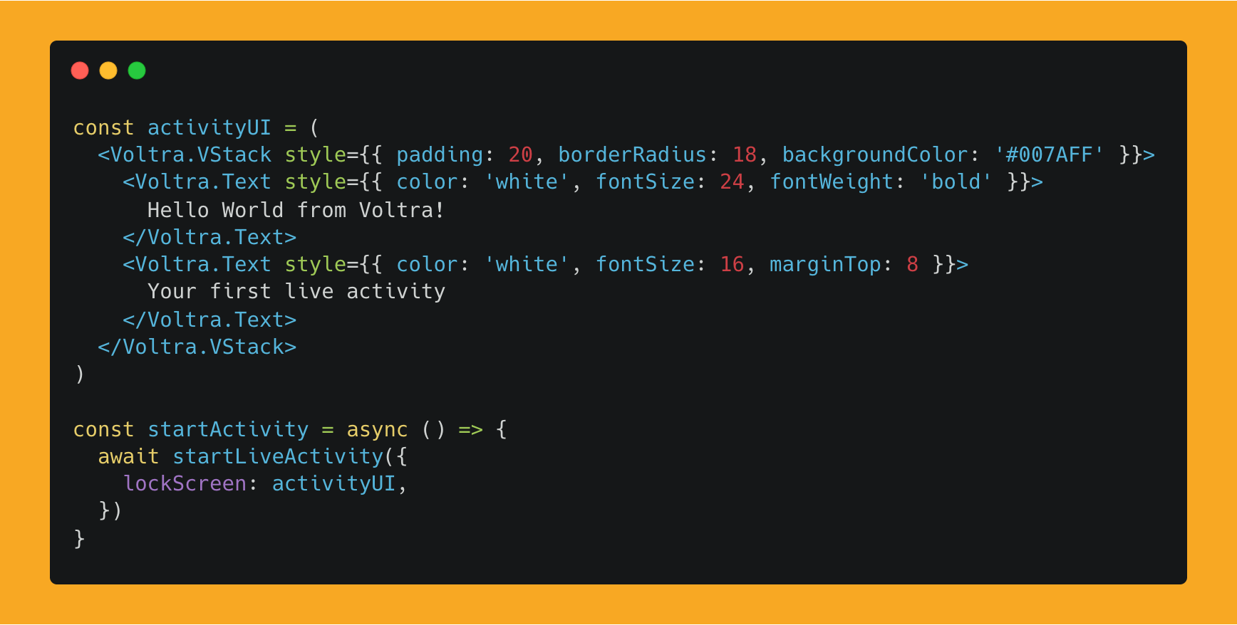 Here is an example of starting a live activity with Voltra: