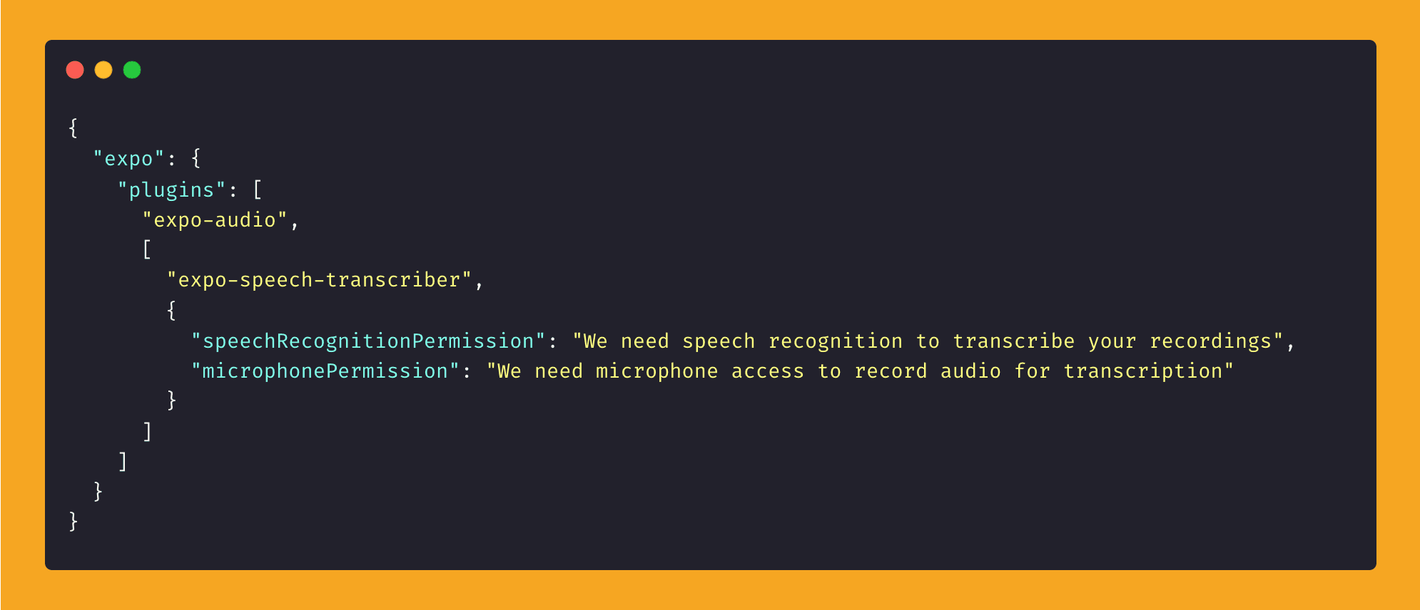 On-device transcription for iOS, privacy-respecting and App Store-friendly, as an Expo plugin: