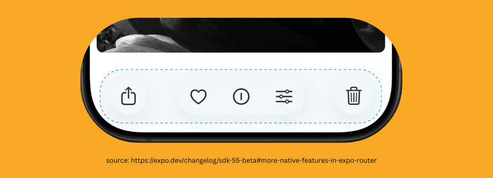 As part of SDK 55, Expo Router also brings experimental support for native UIToolbar for iOS applications, which lets you build menus and actions on iOS.