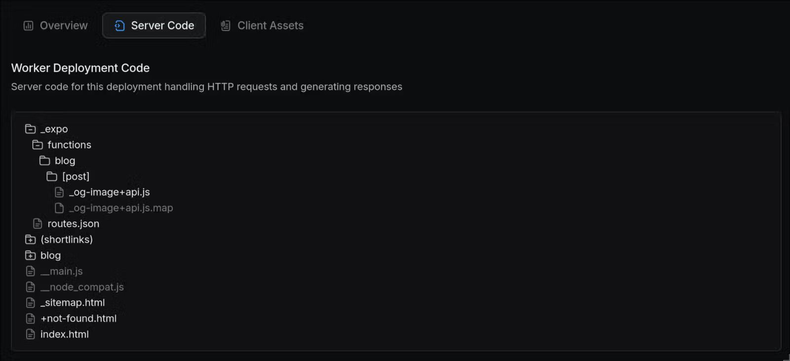 Also worth noting: EAS Hosting’s dashboard now includes a file browser for worker deployments, showing your server code and client assets side-by-side. A tiny, obvious feature, sure—but one that removes a whole class of "wait, what did I deploy?" anxiety.