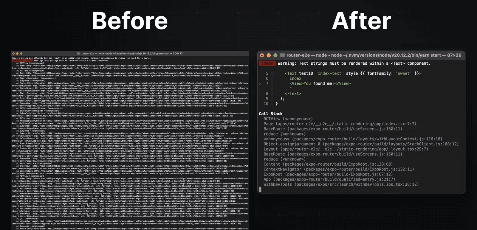 Even better: debugging doesn’t suck anymore. Expo CLI’s error handling has been completely rewritten. Logs are now cleaner, context-aware, and honestly… kind of beautiful? Developers who’ve spent too long decoding spaghetti stack traces in monospaced purgatory will appreciate this one.